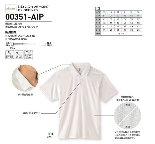 半袖 ポロシャツ メンズglimmer グリマー 3.5オンス インターロック ドライ ポロシャツ スポーツ ゴルフ ビズポロ イベント ユニフォーム 00351 【00351-AIP】 送料無料 通販M15