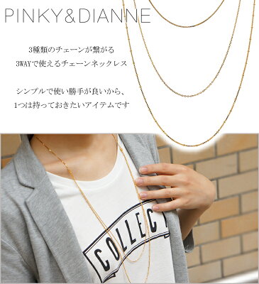 ピンキー&ダイアン 3WAY 2連 ゴールドカラー ロング シルバーチェーンネックレス シルバー チェーン ネックレス ロングネックレス ゴールド 金 シンプル レディース 女性 プレゼント 誕生日 ブランド 人気 彼女 かわいい おしゃれ